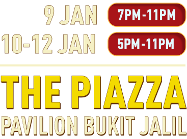 Bring your crew and come join us at The Piazza, Pavilion Bukit Jalil from 9 January 2025 to 12 January 2025 to immerse yourself in the festive spirit and usher in the New Year with boldness and excitement